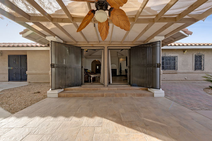 Great Enterprise opportunity! Single story home on half an acre with a 3 car attached garage and a 6 car detached garage/workshop. No HOA, easy access to Fwy 215, I-15, and shopping. Circular driveway, 2 car carport, and plenty of space for your toys! Interior features 4 bedrooms, custom architectural details, vaulted ceilings, arched doorways, skylights, 2-way wood burning fireplace, and security features. Backyard comes with a sparkling pool, lush landscaping, covered patio, tiki hut, bbq area, and entries to the garages. All appliances and 2 storage sheds included.
